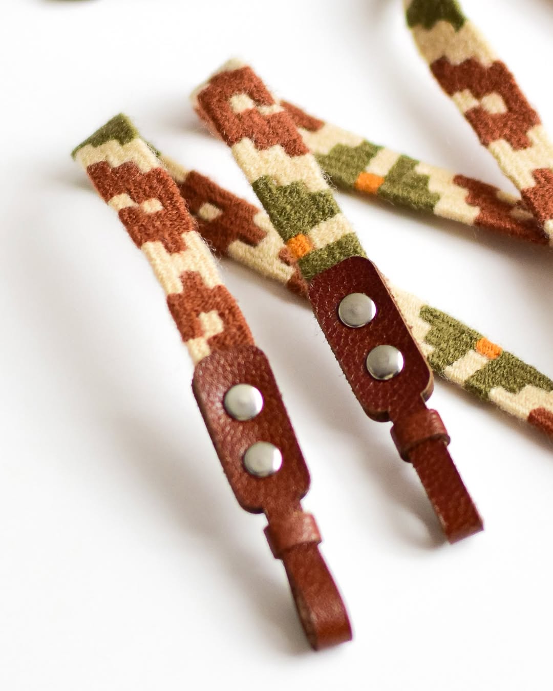 بافت بندعینک گلیم و کار دست چرم بکار رفته طبیعی، یراق آلات رنگ ثابت، بافتش نرم و بدون ایجاد حساسیت و قابل شستشو. قابل تنظیم برای انواع دسته عینکها. طول ٨۵ حدودی عرض ١.٣